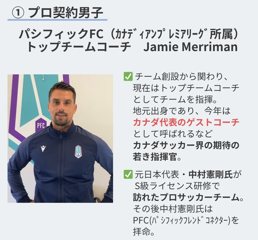 カナディアンプレミアリーグ(カナダ男子プロリーグ)1部所属チームとのプロ契約